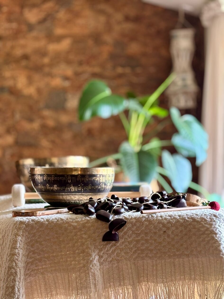 Laat de magie van klank je meenemen naar diepe ontspanning, ondersteund door de natuurlijke kracht van etherische oliën, kristallen én de omgeving.